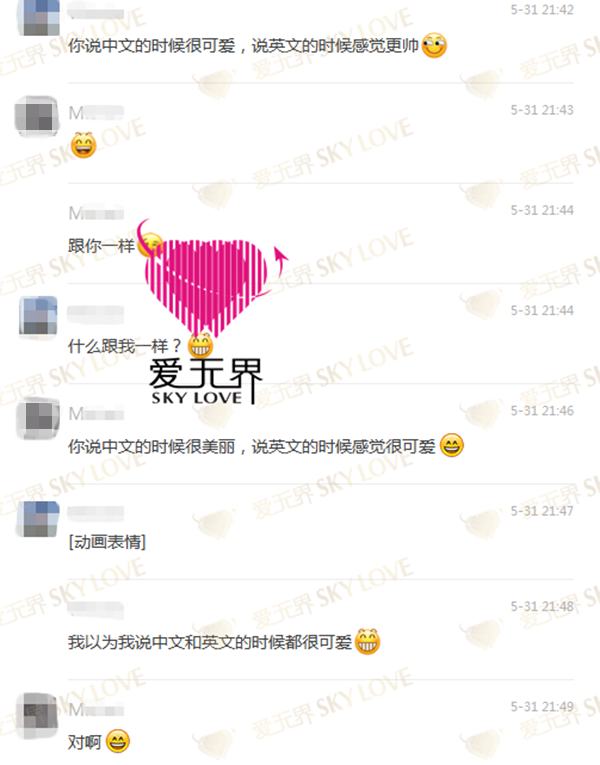 两人交流时,Mahlon正在学习中文,就主动提出可以聊中文,而张女士觉得Mahlon用中文磕磕碰碰的表达方式好像小孩子,很可爱,因此也多生了几分好感,甚至充当起了Mahlon的中文老师。
