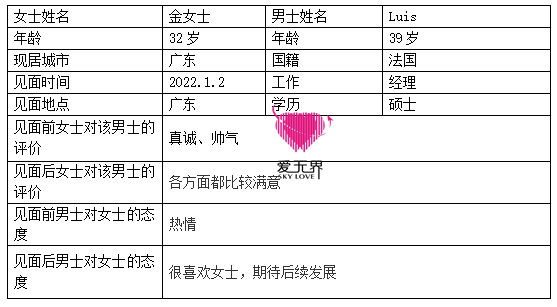 见面后,Luis对金女士很是满意,金女士也和情感老师表示Luis特别绅士,方方面面都体贴入微,对他的第一次印象挺好的。期待两人之后的发展~