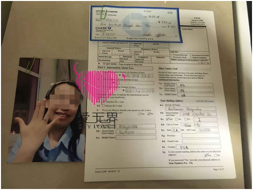 2018年9月,谢女士在爱无界成功和男士Dana订婚,同期提交未婚妻办理申请;