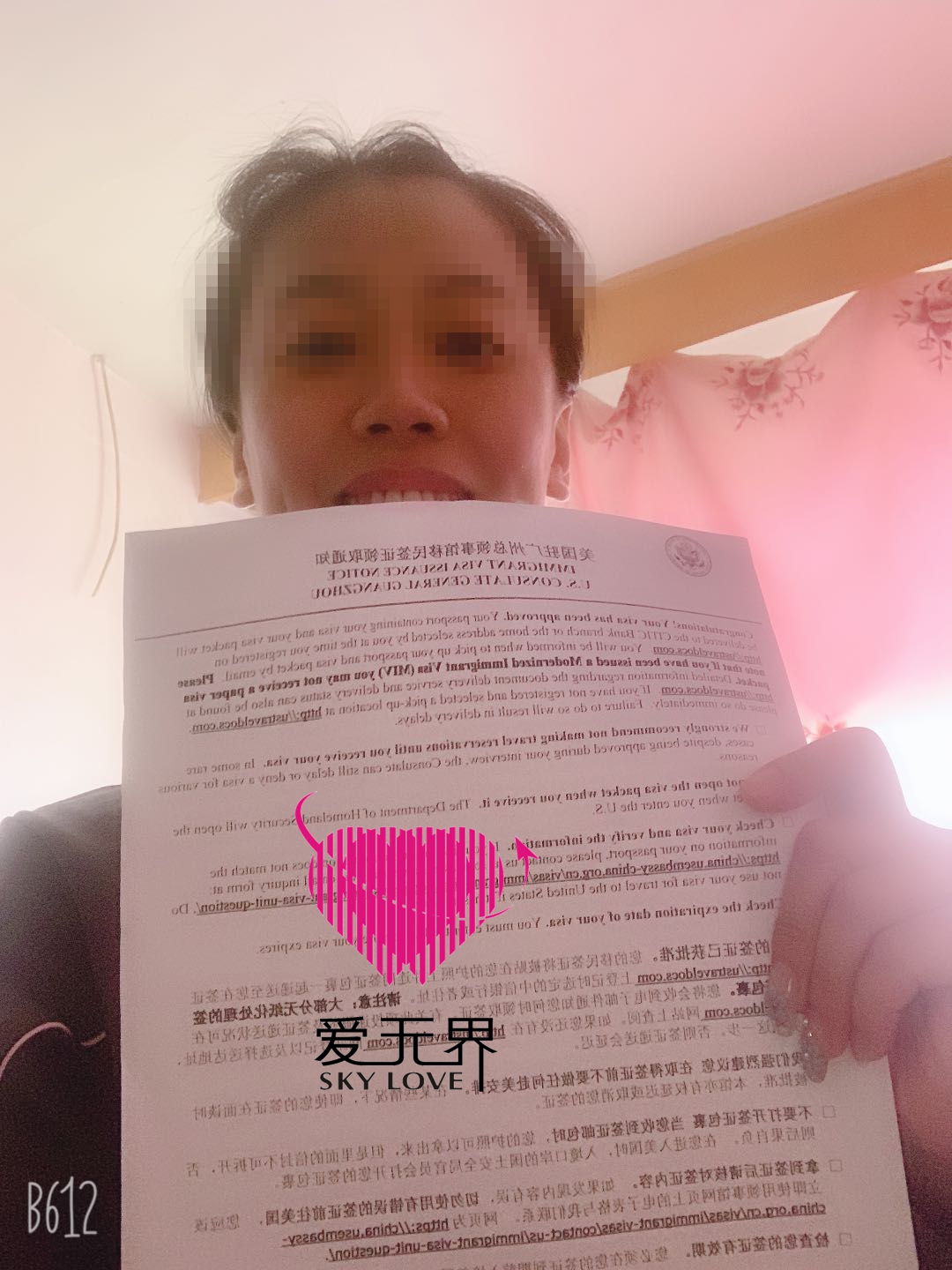 2019年6月12日,谢女士未婚妻签证到手!太高兴了,立刻发照片给教练汇报好消息!!!