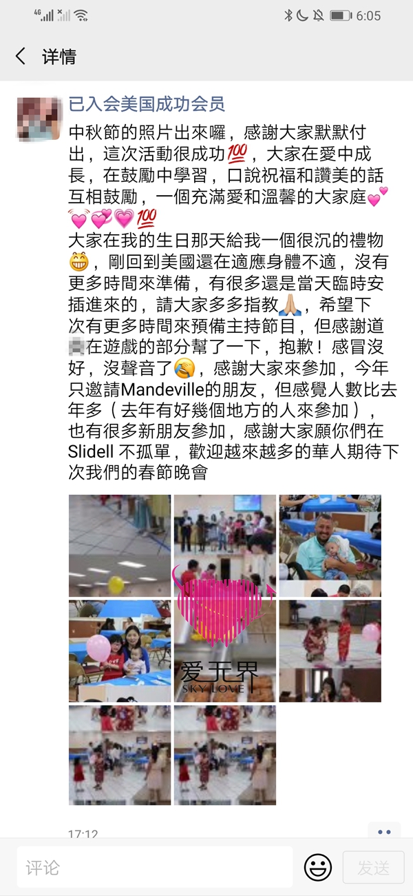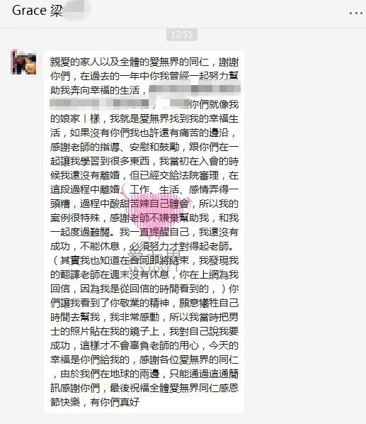 🐈 梁女士一直把爱无界当成自己的娘家人,看到爱无界服务组总是很用心的协助她教她筛选男士、与男士交流,梁女士的内心非常感动,她很明白自己找到爱无界应该如何借助公司团队的帮助来实现自己的幸福目标,一直积极与服务组互动,和爱无界一起努力朝着自己想要的方向前进。