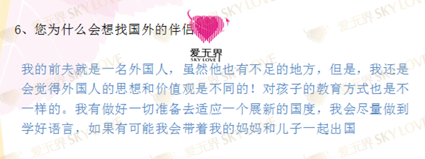 ܫ 太多的不幸也让田女士感悟:不管遇到什么事都要承担和勇敢的面对,生活给我的,我都会接受并努力改变现状,然后学会面对生活。怀着这样的心态,和前一段跨国婚恋的体验,让她再次踏上追寻异国情缘的道路。但经过“血”的教训,这一次,她选择与专业的团队同行,加入爱无界。