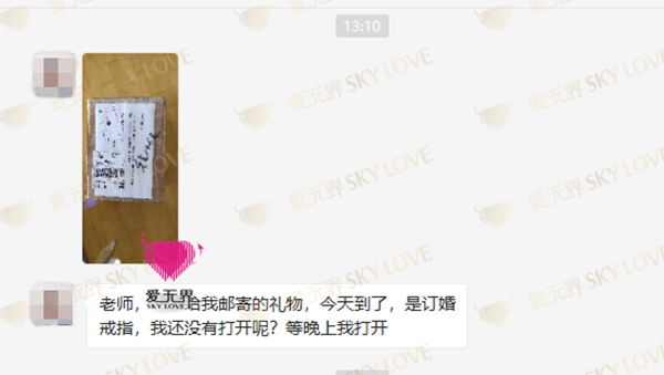 ꧑ 几个月后,她收到了那份沉甸甸的包裹,漂洋过海,却未减少一分的情意。在货架上细细寻觅,在找到自己的包裹后,当看到熟悉的寄件人时,韩女士不自觉地露出灿烂的笑容。她一边给Roy留言,一边和情感老师分享照片、视频。从最初到现在,一路上都有情感老师的陪伴,韩女士想第一时间和她分享。