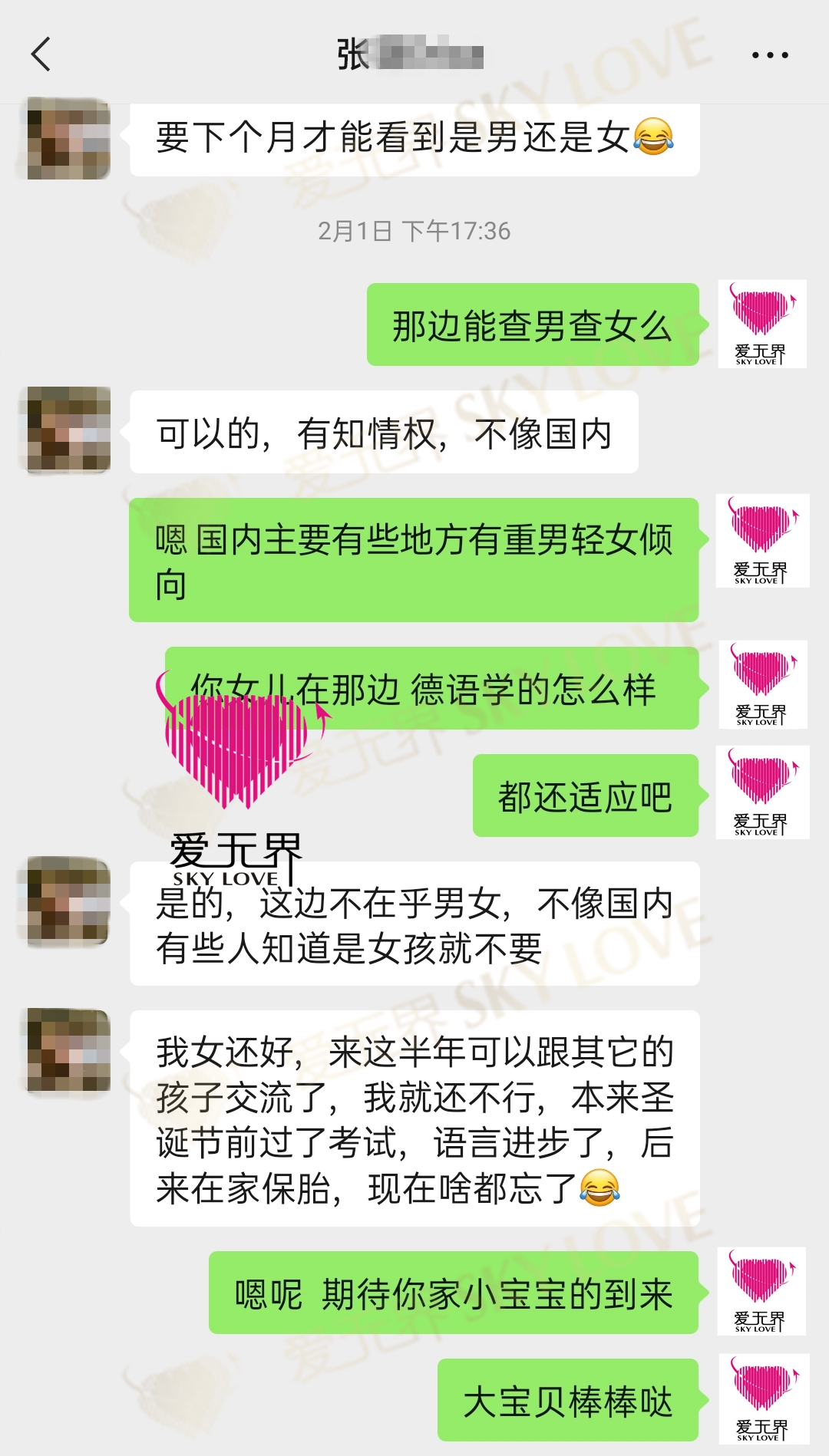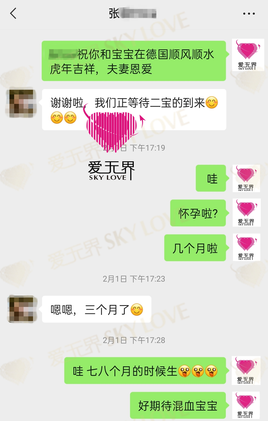 在德国生活了1年多,经常和我们晒美景秀恩爱的张女士又分享了一个好消息——她和Andreas拥有了爱的结晶,他们即将迎来一个可爱的混血宝宝。🐟因为爱情而孕育下一代,是最幸福的事情,这个混血宝宝因爱诞生,是张女士和Andreas爱情的见证,也是生命的延续。在和爱无界的情感老师对话时,张女士语气中都止不住的幸福和憧憬。