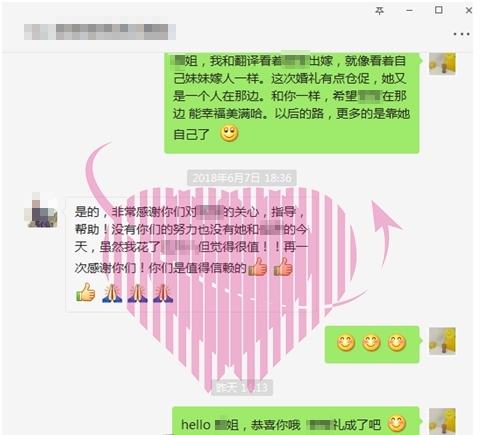 ꦐ 不到半年的时间里,莺莺抓住了她的真命天子。关于情感导师的服务和贴心指导,她和她的母亲都非常满意,觉得非常专业和高效。