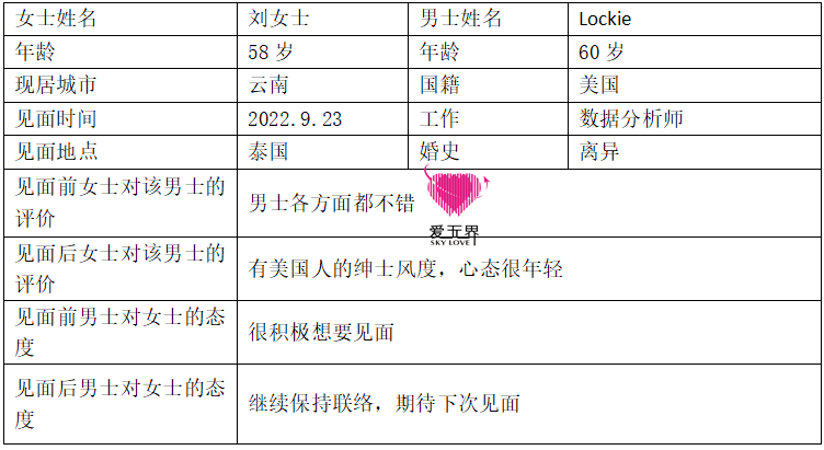 刘女士的第一站,是泰国;见的第一位男士,是美国的Lockie。