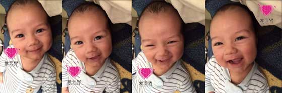 笑得这么开心,一定是爸爸妈妈在逗你啦!哈哈