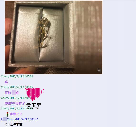 ♔ 在情人节那天,Bill远在海外也不忘给孙姐和她的女儿送来礼物,2017年2月19日孙姐前往美国圣克劳德市跟Bill见面,这次已经是他们的第4次见面了,孙姐给教练分享了当天男士向她求婚的火爆消息,教练能够深深的感受到孙姐在言语上掩藏不住的幸福感。孙姐羞涩的笑着说:“上次因为没有准备好,所以没答应他。但是Bill的真诚与不放弃的执着,再次让我确定了他就是我下半辈子可以托付的人。”