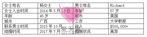 喜事要来!又一对恋人要结婚啦!来自四川成都45岁的杨女士和来自美国57岁的Richard,很般配有木有!!