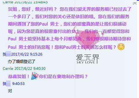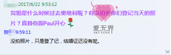🎉 2017年6月,我们收到了贺姐的好消息!贺姐已经在奥地利和Pual登记结婚,结婚证在9月才能拿到!言简意赅的贺姐的风格依旧,她说接下来要安排时间去考取德语证书了!