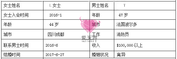 🎐四川成都L女士和法国T,他们是去年6月下旬遇到对方的,因为男士真的很喜欢L女士,第一次见面后,两人相处的感觉都非常的好,同时也认定了对方🅘就是自己要找的那个人,情投意合的两人很快便讨论起了结婚的事情,L女士原本打算去法国注册结婚的,但是由于手续过于麻烦,T便在2017年6月份飞到成都注册结婚!