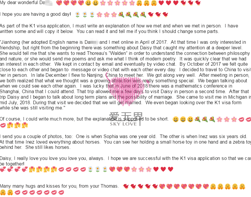 🎉 在这3次的见面和相处之后,尹女士和Tho都认定对方就是自己一直想要的那个人,他们很快就着手办理了结婚签证,想要永远在一起,Tho在写给尹女士的一封信里面说道:“我是真的真的很爱你,每分每秒都念着你。你不知道我多希望这次的签证可以顺利通过,这样我们就可以很快在一起啦。”