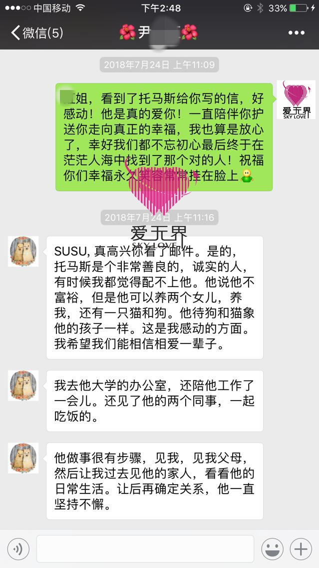 🌳 慢慢地,在爱无界教练的帮助下,尹女士重建了和男士沟通的信心和动力。当女士调整好心态,重新出发,爱情也随之而来。每一位女士都是渴望找到一位爱人,能够懂她宠她呵护她的男士,但在这之前,你也要有接纳爱的勇气,所以,当尹女士做好这个准备,并积极去和男士沟通时,丘比特的爱神之箭便在等候着她了。这时候,她遇见了Tho,58岁,一位美国的教授。