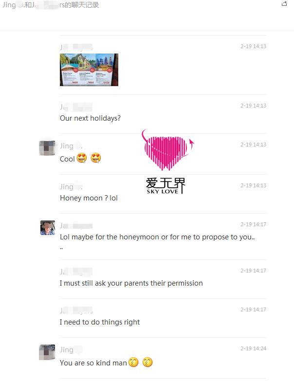 刚刚经历过一段错误婚姻的她,内心还有点低落,很渴望能够在这个阶段找到真命天子,尽快找到一个让她感觉到爱的人。刚开始服务时,Jingꦉ有点焦急,在走跨国婚姻的路上也比较迷茫,但是女士一直用理解、配合以及一种学习的心态和教练交流自己内心的想法以及和男士进展过程中遇到的问题,爱无界教练在和Jing沟通交流的过程中也越来越了解女士的需求,在翻译老师的配合下,Jing和Jepson不期而遇。