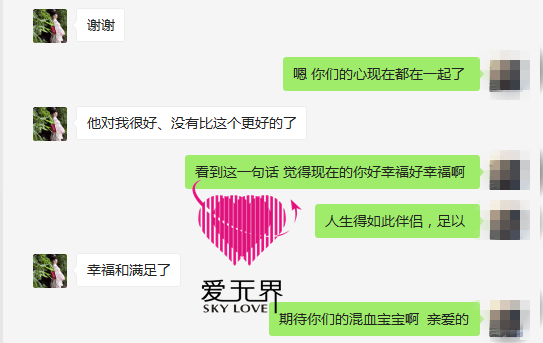 𝔍 时光很慢,幸好遇见你,对于王女士来说,当别人还在犹豫不决的时候,她勇敢出发寻爱,最后找到了最好的人,每一天都在收获幸福,每一天都在感恩自己当初的选择。爱无界祝福王女士!