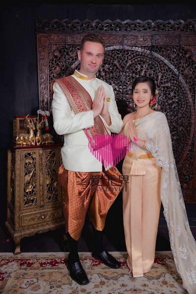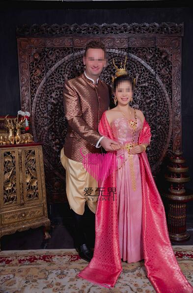 🐻有你的日子里,每一天都是幸福!王女士和Alex在泰国,身穿高贵的泰国服饰,在充满泰国风格的木质雕花镂空屏风前,拍下美丽的合影,他们脸上洋溢着甜蜜的笑容,相互依偎着,Alex的大手轻轻握住王女士的小手,那一刻,一切岁月静好!