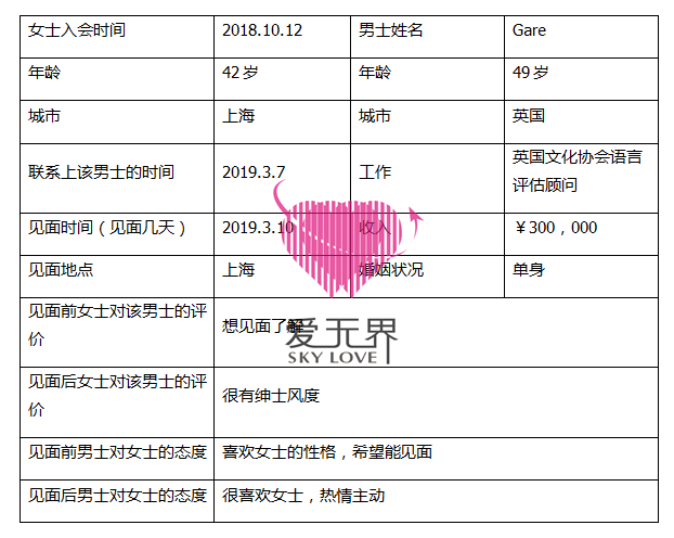 ﷽两人在微信上交流了起来,由于女士此时有很多位感觉不错的男士同时交流中,没有很多时间和精力和男士互动,但依旧阻挡不了男士的热情。得知女士最近要搬家,他主动请缨,希望能为女士搬家,在爱无界教练的指导下,Jing早已知道和西方男士谈恋爱的技巧,她非常风趣地和男士说英国的人工费太贵,怕雇佣不起他。或许Gare也一直在等待机会,他表示不需要给钱,只需要Jing请他吃一顿饭他就很满足了。从这刻开始,两人的感情慢慢发生了微妙的变化,交流的频率也比之前更高了。