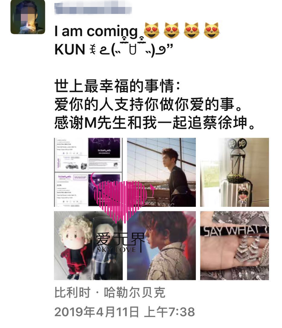 刘女士喜欢蔡徐坤,她的丈夫就陪着她一起追星,学唱蔡徐坤的歌,还陪着刘女士一起去周游各国看蔡徐坤的演唱会,刘女士过成了世界上最幸福的女人。