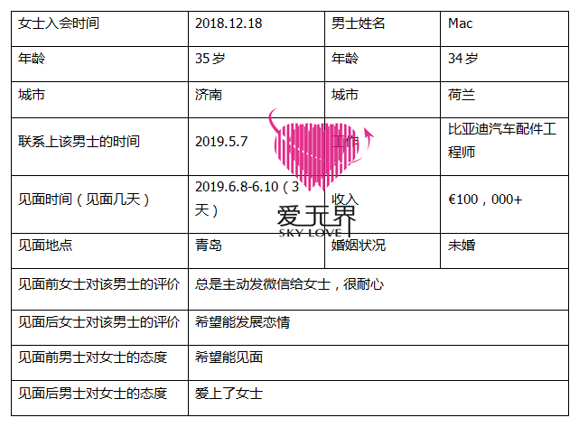爱无界教练寄语:爱无界不局限只做线上匹配翻译服务,还不定期的组织海外游去异国实地感受文化和与男士见面,爱无界的团队努力实打实地为会员们落地服务,为了有更多更优质的资源,不断开拓并搭建无国界的爱的平台,真正成为“爱神丘比特”。