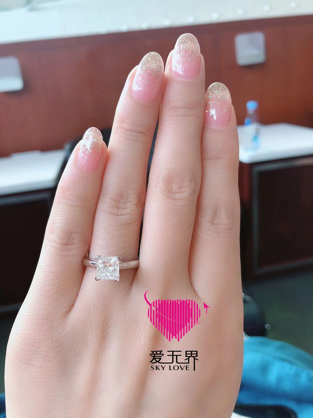 公主方形大钻戒与Dora修长的手指 完ܫ美搭配有木有!
