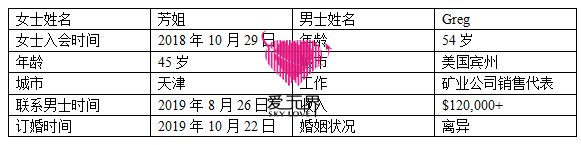 在跨国婚姻的路上,芳姐是迷茫无措的,她不清楚自己真正想要的是什么,爱无界教练一次次指导,一次次鼓励和关心,让芳姐的心变得踏实、自信,她🌠积极配合教练,跟着爱无界的脚步一步一步往前走,8月26日,她的白马王子出现了!男士名叫Greg,来自美国——芳姐最心仪的国家。