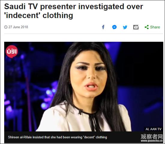 𝓀 据英国BBC网站6月27日报道,近日,一名在迪拜电视台工作的沙特女主持人谢林·艾尔·利法伊(Shereen Al Rifaie)在沙特报道新闻时,没有正确穿着阿巴亚,违反了妇女着装规定,沙特视听媒体委员会准备对利法伊展开调查。不过,该主持人已乘飞机返回阿联酋。