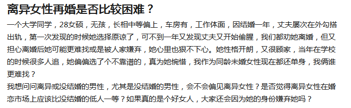 一个关乎“离婚女性再婚”的问题,相信有不少人会关注,如: