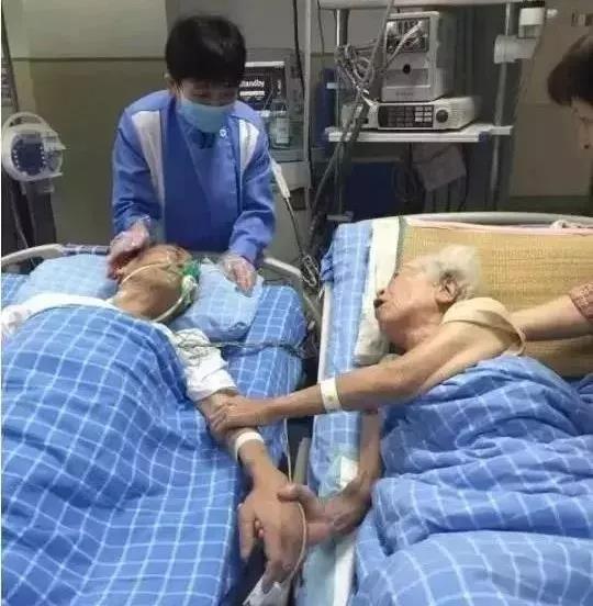 ༺ 在治疗无望的情况下,爷爷选择放弃治疗,离院前,老人只有一个要求:希望能和老伴再见一面,拉一拉她的手。躺在病床上的爷爷见到奶奶后,已经无法言语,只能尽力将奶奶的身姿。