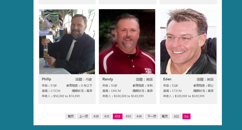 在爱无界官网上,男士信息高达400多页,每页ܫ有9个男士,且展示出来的还只是爱无界无数资源里面的一小部分而已。因为男士资源太多太多,爱无界小编没有很多时间去把所有的都更新出来,但是,在工作日内,爱无界官网的男士信息基本上每天💜都有更新。