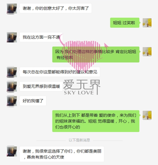 当你在恋爱过程中遇到什么问题,她们都会在背后陪伴你,从你和男士聊天到见面再到最后的情感发展,她们都会指导你如何和男士相处。