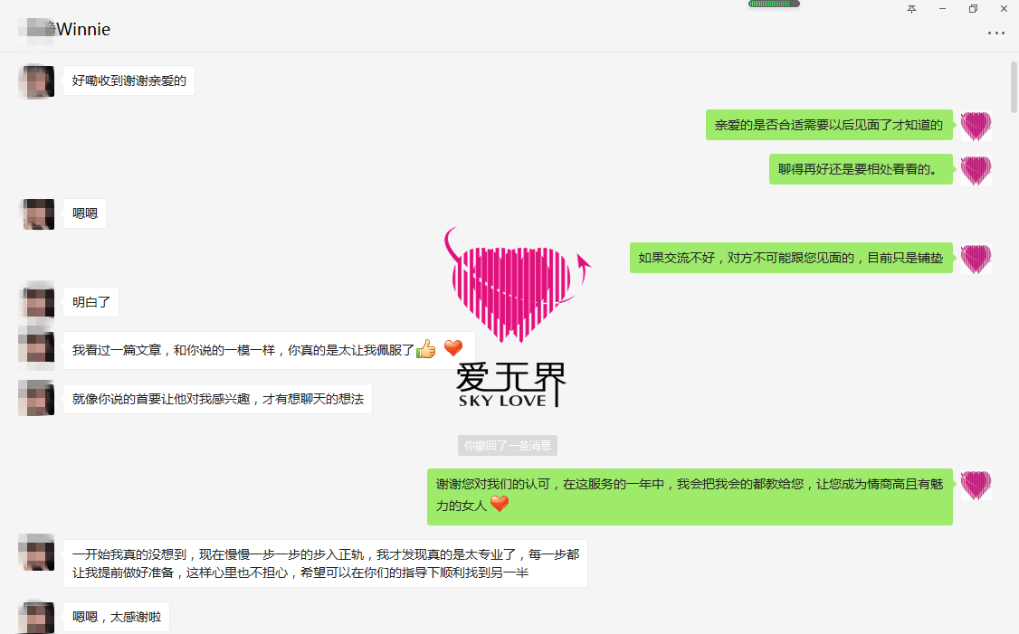 🌺在李女士和西方男士谈恋爱的过程中,爱无界教练一步一步带领着李女士前进,告诉李女士每一步具体要怎么做、该如何和西方男士交流、用什么技巧才能俘获西方男士的心等等,从方方面面去保障李女士的跨国婚姻路,带领李女士成就自己的跨国婚恋梦,成长为一位情商与魅力兼备的女性。