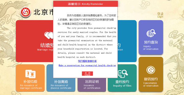 北京跨国结婚登记网上预约入口://ggfw.mzj.beijing.gov.cn/jhyy/marryout/marry/index.html